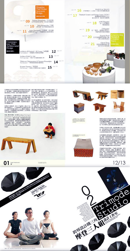 從廉價粗糙製品,到如今深受國際矚目的生活家居、時尚、飾品等設計領域,泰國在短短十多年內不可思議地逐漸變身,成為亞洲Lifestyle新興時尚之都。榮景幕後的一群新生代設計師,逐漸以東西融貫、新舊交雜的思維,在國際間受到矚目。